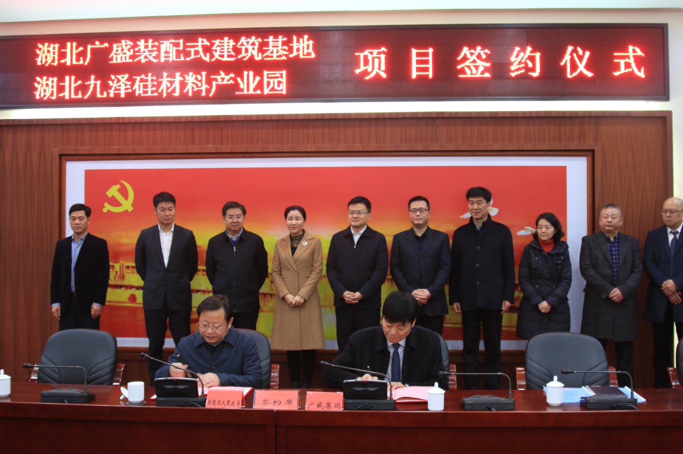 1月8日上午,夷陵区委区政府与湖北广盛集团签订装配式建筑生产基地项目合作协议,广盛装配式建筑生产基地正式落户夷陵区龙泉镇钟家畈循环经济产业园。市住建委党组书记、主任张毅,夷陵区委书记王玺玮,夷陵区政府区长王平昌,市住建委党组成员、副主任叶帮斌等领导出席会议。