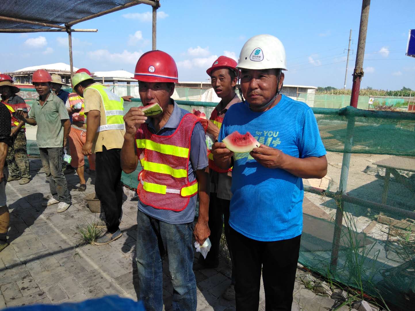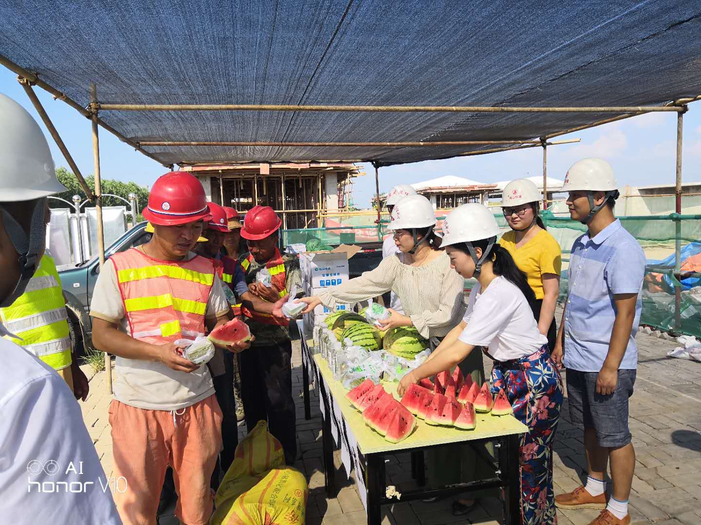 7月25日,枝江市住建局走进七星台污水处理厂、顾家店污水处理厂等项目建设工地,对奋战在高温一线的职工表示亲切的慰问,并送上西瓜、矿泉水和消暑药等防暑物资。