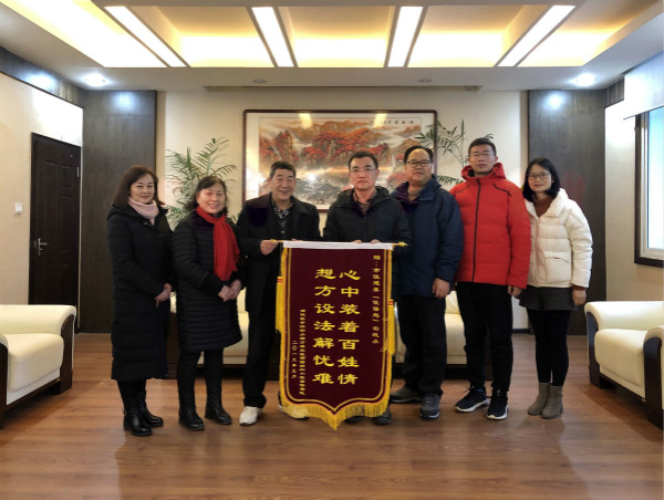1月14日,新白龙岗小区和四方堰社区业委会主任和居民代表来到市住建委,将印有“统筹有力 指导有方!”和“心中装着百姓情,想方设法解忧难!”的两面锦旗送到市住建委党组成员、副主任杨涛手中,对住建委在老旧小区改造中所做的大量工作表示感谢。
