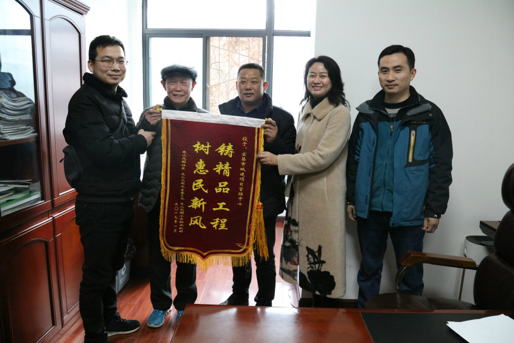 1月22日,东山花园社区业委会、物业公司和居民代表来到市城建项目管理中心,将印有“铸精品工程,树惠民新风”的锦旗送到市城建项目管理中心党支部书记、主任戴大荣手中,对项目中心在东山花园人行天桥建设中所做的工作表示感谢。