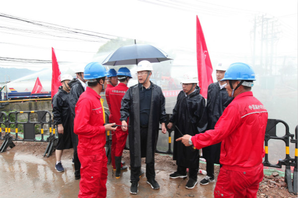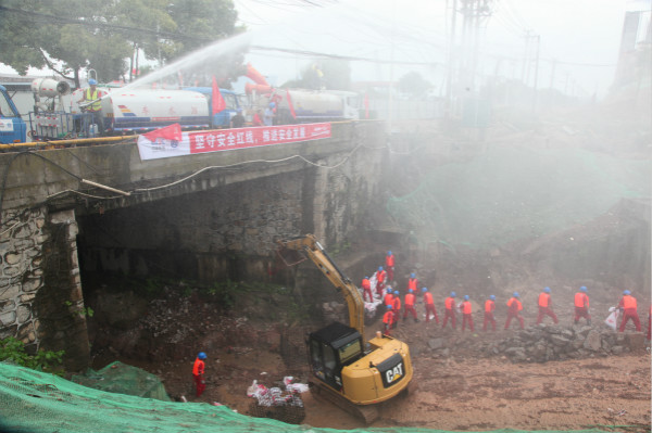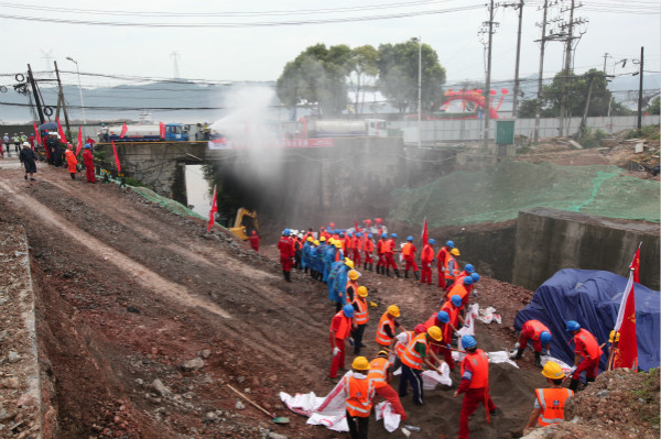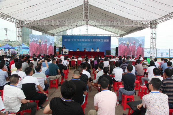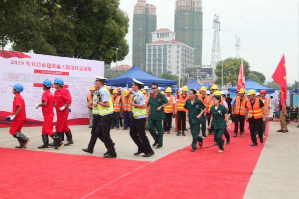 “报告,今天的特大暴雨已经造成工地局部施工部位出现内涝,请指示。”6月30日,市建设安全生产专委会、市住建局与伍家岗区政府共同在沿江大道延伸段龙盘湖大桥举行全市建筑施工防汛应急演练,演练活动由中国葛洲坝集团第一工程有限公司负责承办。市政府副秘书长朱家法现场指导演练。