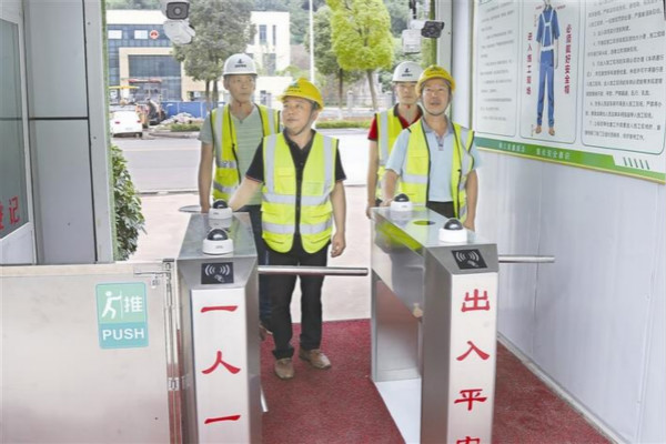 “滴!”10月28日上午11时,在点军区五龙小学项目现场,项目安全生产管理人员徐士洲“刷脸”下班。