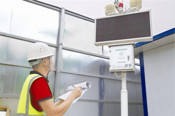 同时,平台还能显示工地的实时风向、温度、噪音、PM2.5等10项数据,当监测数据显示黄色或者红色,表示不达标,可远程发布预警,并自动开启喷淋降尘设备。