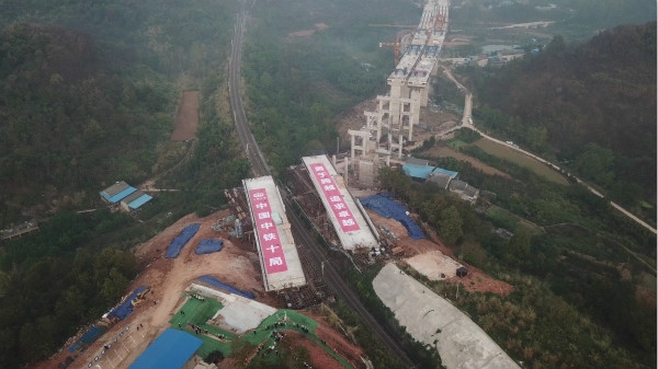 11月8日上午7时30分许,在峡州大道后河大桥施工现场,随着四台牵引机的轰鸣启动,两个直径8米的“大转盘”,分别带动重约3500吨的梁柱转动。经过45分钟空中转体,顺时针旋转48度,实现“完美转身”成功跨越鸦宜铁路,这是我市市政建设领域首次采用平面转体施工的工艺。