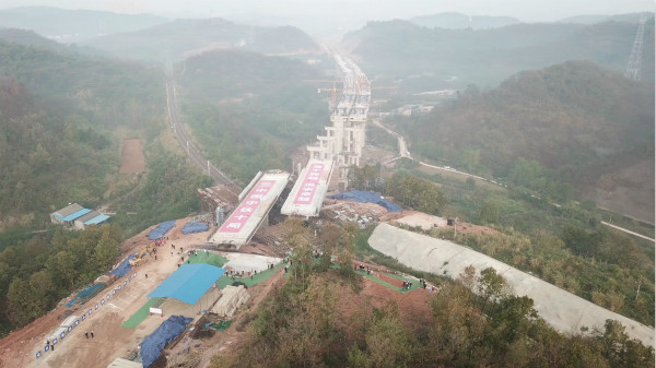 峡州大道后河大桥“完美转身”----45分钟空中转体48度