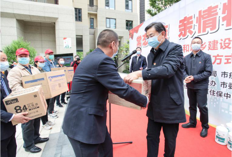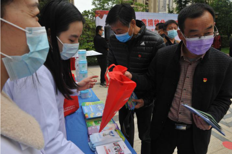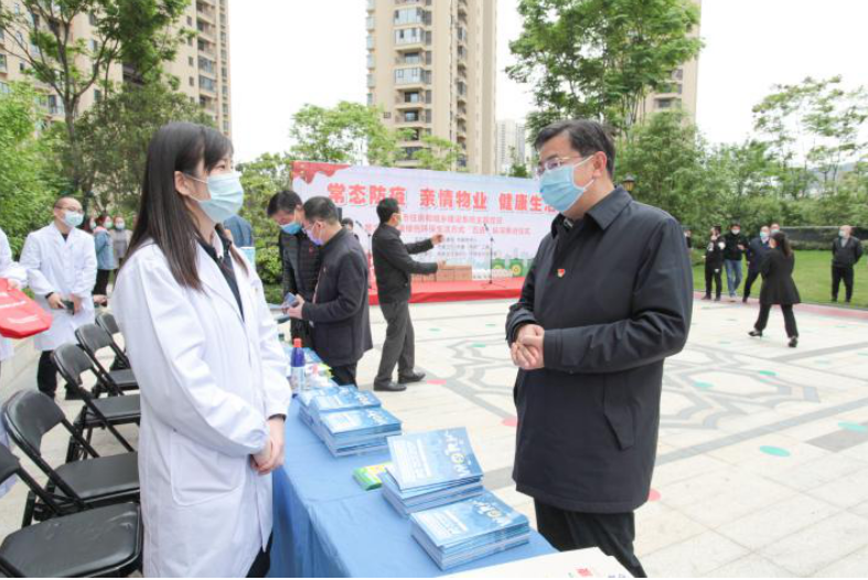 4月23日,市住建局、市疾控中心,在高新区保利时代小区,联合举办“常态防疫、亲情物业、健康生活”进小区活动,组织开展健康宣教、清扫保洁、卫生消杀等,并发放防护用品,以此持续掀起爱国卫生运动热潮,深化巩固前期防疫成果。