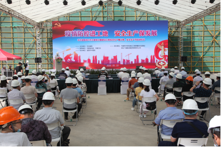 5月22日,市住建局、市中医医院在市中医医院门急诊综合大楼新建工程施工工地,联合举办“疫情防控进工地 安全生产保发展”5月主题党日暨建设工程安全生产警示周、安全生产月启动仪式。组织开展健康宣教、讲述“我的抗疫故事”、现场观摩等,并发放宣传手册,以此深化巩固前期防疫成果,持续掀起爱国卫生运动热潮。市住建局党组书记、局长张毅,市卫健委党组成员、副主任曹政,市住建局党组成员、总工程师袁庆华,市中医医院党委书记周林峰,市中医医院院长周刚等参加活动。