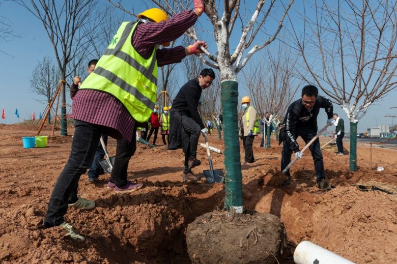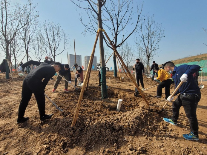 市住建局及局属单位、市优功能攻坚指挥部办公室干部职工和市优功能攻坚指挥部青年干部研习班学员、西陵区山庄路社区干部等150余人参加义务植树。