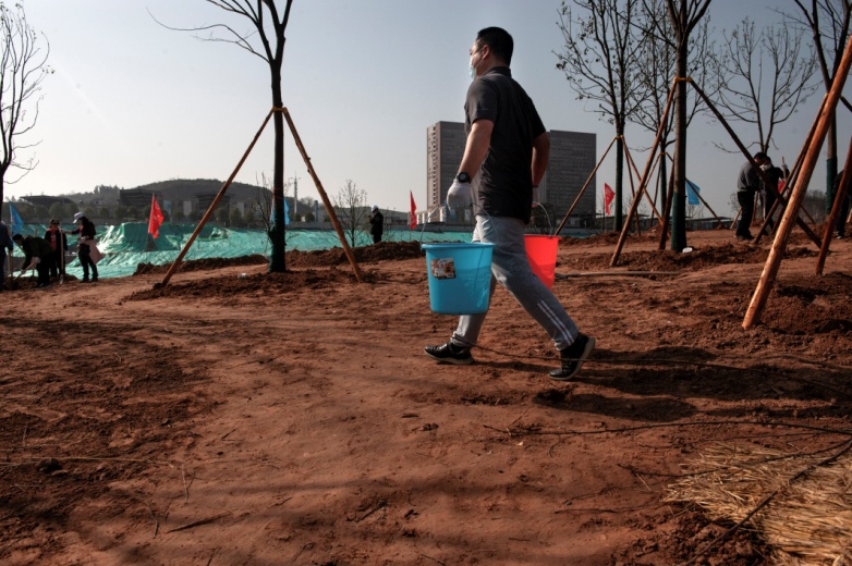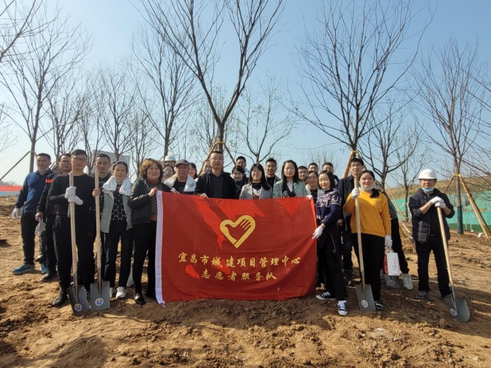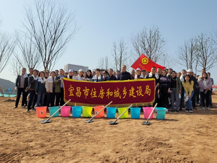 春阳暖风催嫩绿,一场“争当城建热血尖兵、建设滨江公园城市”义务植树活动,在三峡大道·花溪路互通工程C匝道绿化场地火热进行,挥锹铲土、扶树填土、提水浇灌,栽植香樟、朴树、樱花等苗木,为宜昌春天增添新绿。