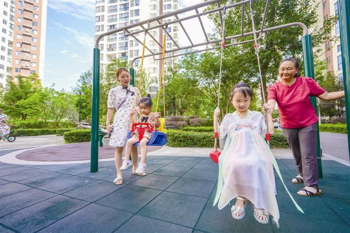夜明珠金安岭小区改造后,孩子们有了足够的空间嬉戏玩乐。