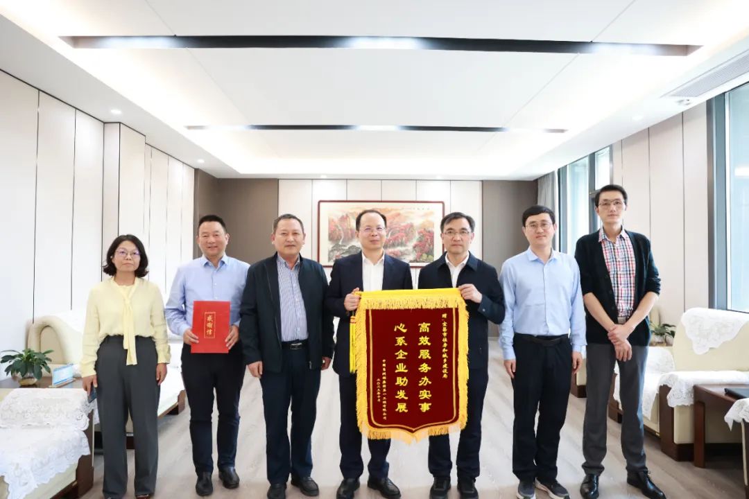 10月17日,中国葛洲坝集团第一工程有限公司党委书记、董事长胡智军将写有“高效服务办实事、心系企业助发展”的锦旗,送到宜昌市住房和城乡建设局党组书记、局长杨涛手中,对市住建局助力公司成功晋级矿山壹级资质给予的指导和帮助表示感谢。
