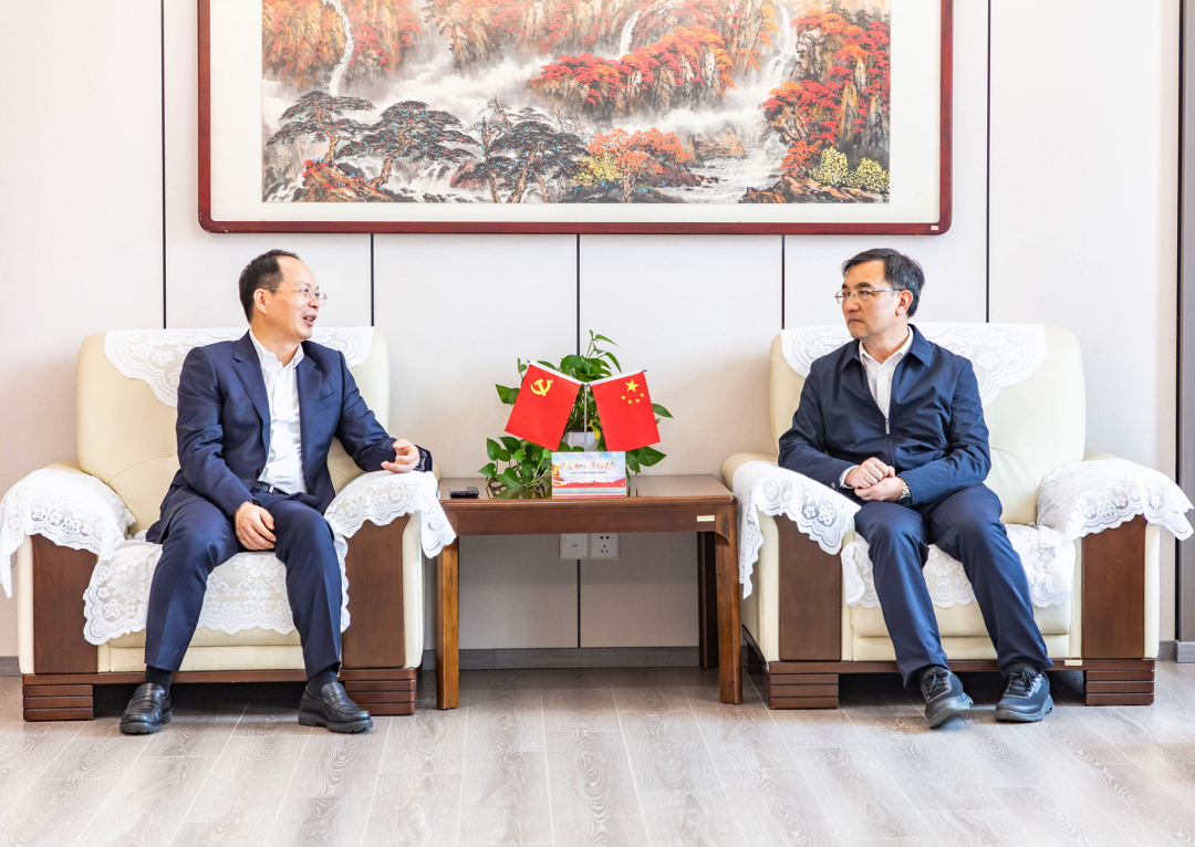 中国葛洲坝集团第一工程有限公司党委书记、董事长胡智军(左)到宜昌市住建局交流座谈