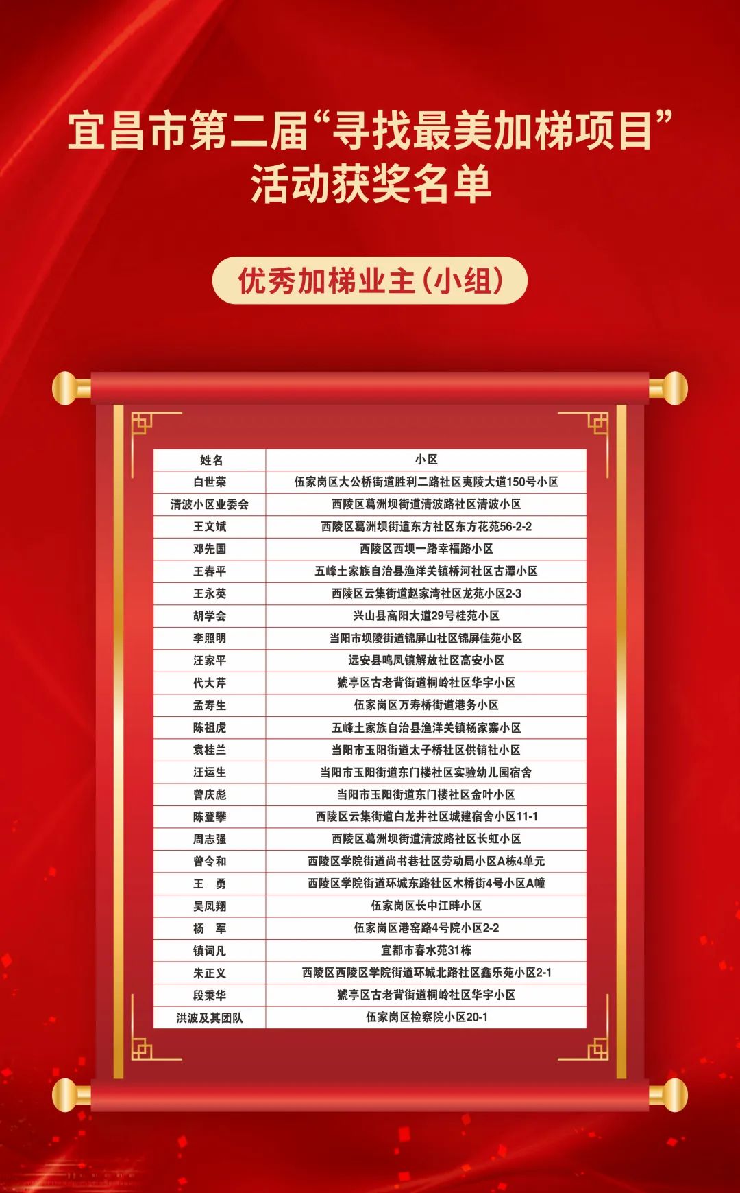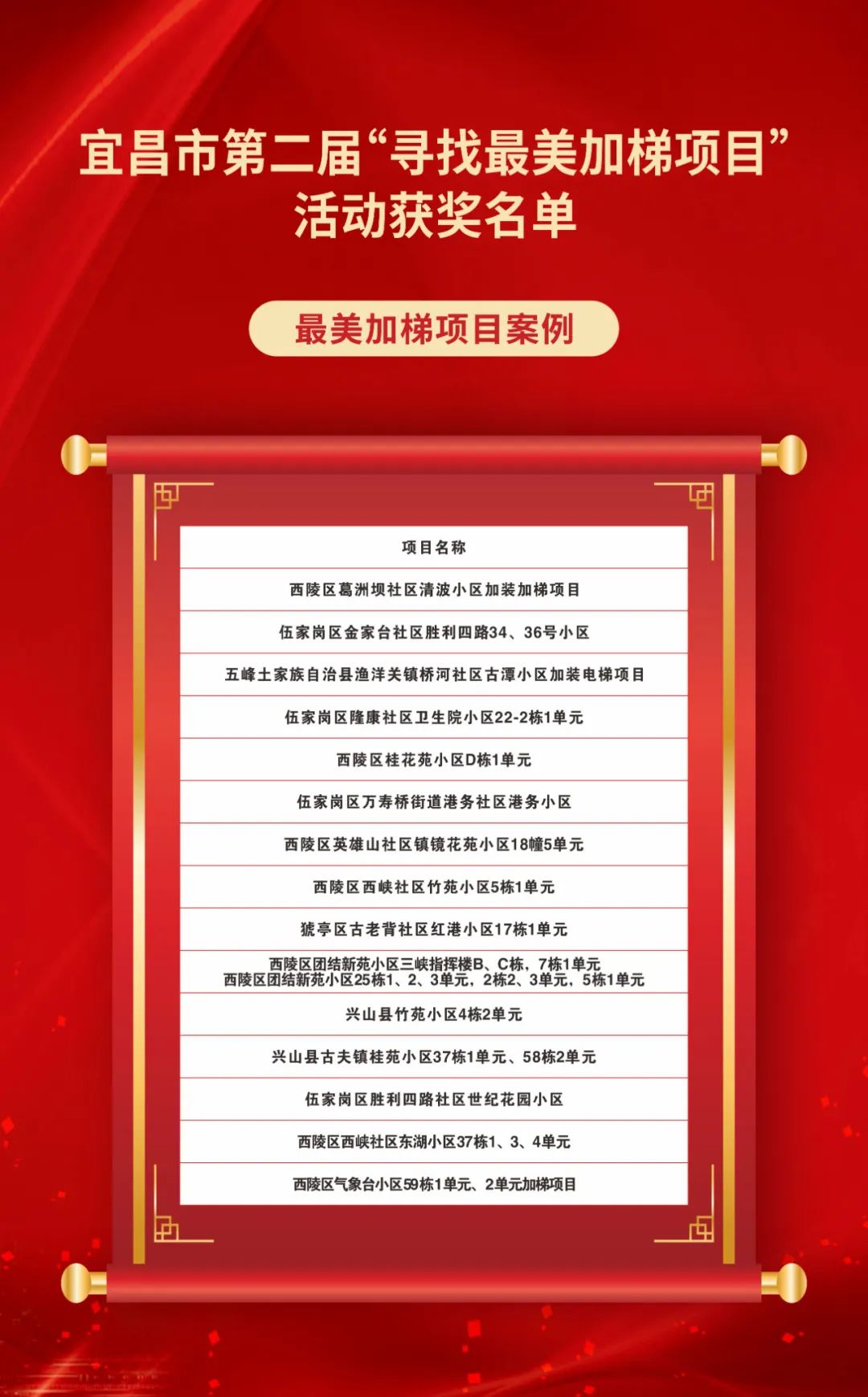 宜昌市第二届“寻找最美加梯项目”活动获奖名单公布
