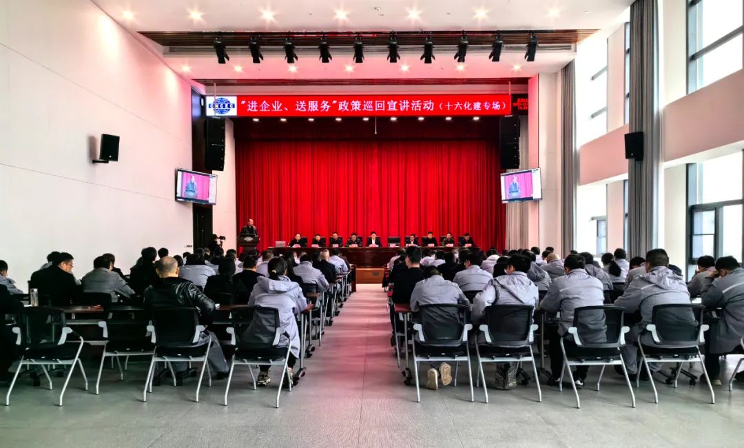 为深入贯彻落实“四下基层”工作方法,推动主题教育走深走实,切实为企业排忧解难,市住建局启动“进企业、送服务”政策巡回宣讲活动,12月1日,在十六化建总部大楼组织召开了首场政策巡回宣讲,市住建局党组成员、副局长许刚出席活动并讲话,十六化建党委副书记、总经理张鸿峰致欢迎辞。