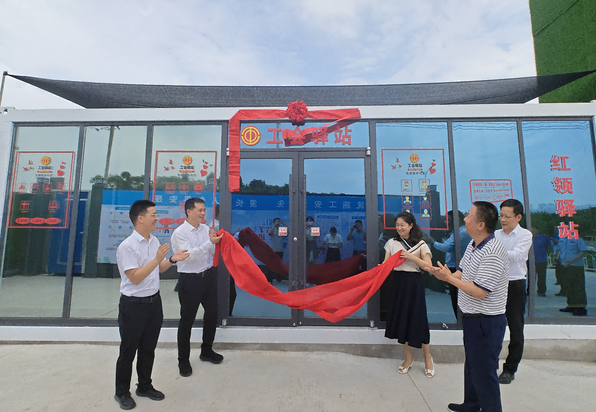 7月4日下午,由宜昌市住房和城市更新局与中建三局集团有限公司联合建设的花溪路工会驿站正式揭牌,开门迎客。市总工会党组成员、副主席李敏,市住房和城市更新局党组成员、副局长叶帮斌出席揭牌仪式。