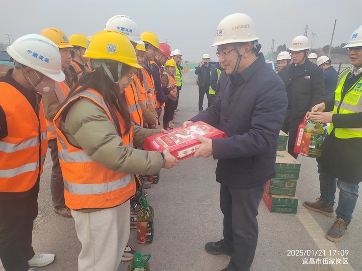 春节前夕,宜昌市住新局领导班子深入重点工程一线,装饰行业,供水、供气、污水处理企业,物业公司和对口扶贫村等开展2025年“新春送温暖”活动,为春节期间坚守岗位的职工群体送上了节日祝福,并鼓励他们继续发扬艰苦奋斗、勇于拼搏的精神,让城市更美丽、更宜居,让群众生活更美好、更幸福。