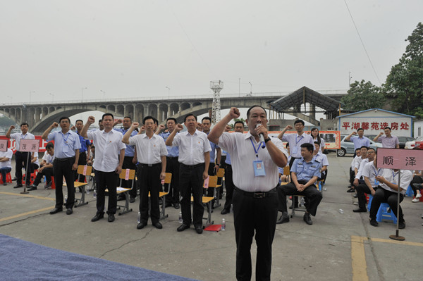 劳务公司代表万泉公司经理杨忠向全体劳务公司发出“再战一百天,打好攻坚战”誓言。