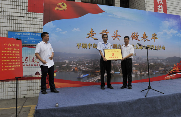 6月14日,平湖半岛拆迁协调办临时党支部成立授牌暨 “走前头做表率”支部主题党日,在平湖半岛拆迁现场开展。活动由市住建委(住房保障管理局)党组成员、副主任、直属机关党委书记叶帮斌主持。