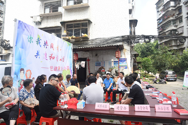 7月11日,高新区分局联合高新区建管办、城东社区前往待改造的老旧小区兴龙小区开展了“你我共同携手共建和谐小区”住建服务进小区活动。
