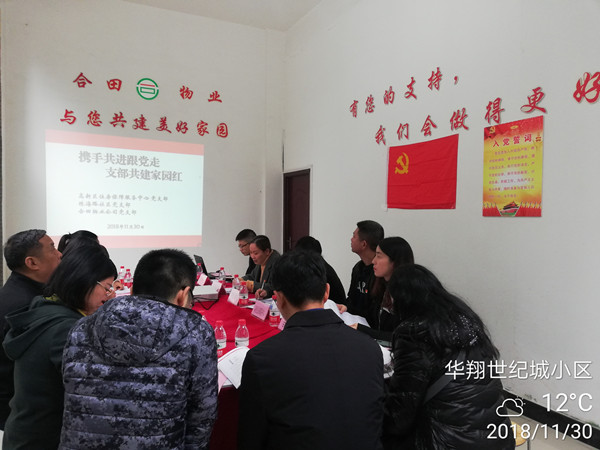 为进一步宣传和贯彻执行党的路线方针政策,推动中央、省委和市委有关决策部署在“两新”组织中贯彻落实,高新区住房保障服务中心创新形式,结合实际,于11月30日联合珠海路社区党支部、合田物业公司党支部在高新区华翔世纪城小区开展了一次特殊的支部主题党日活动。