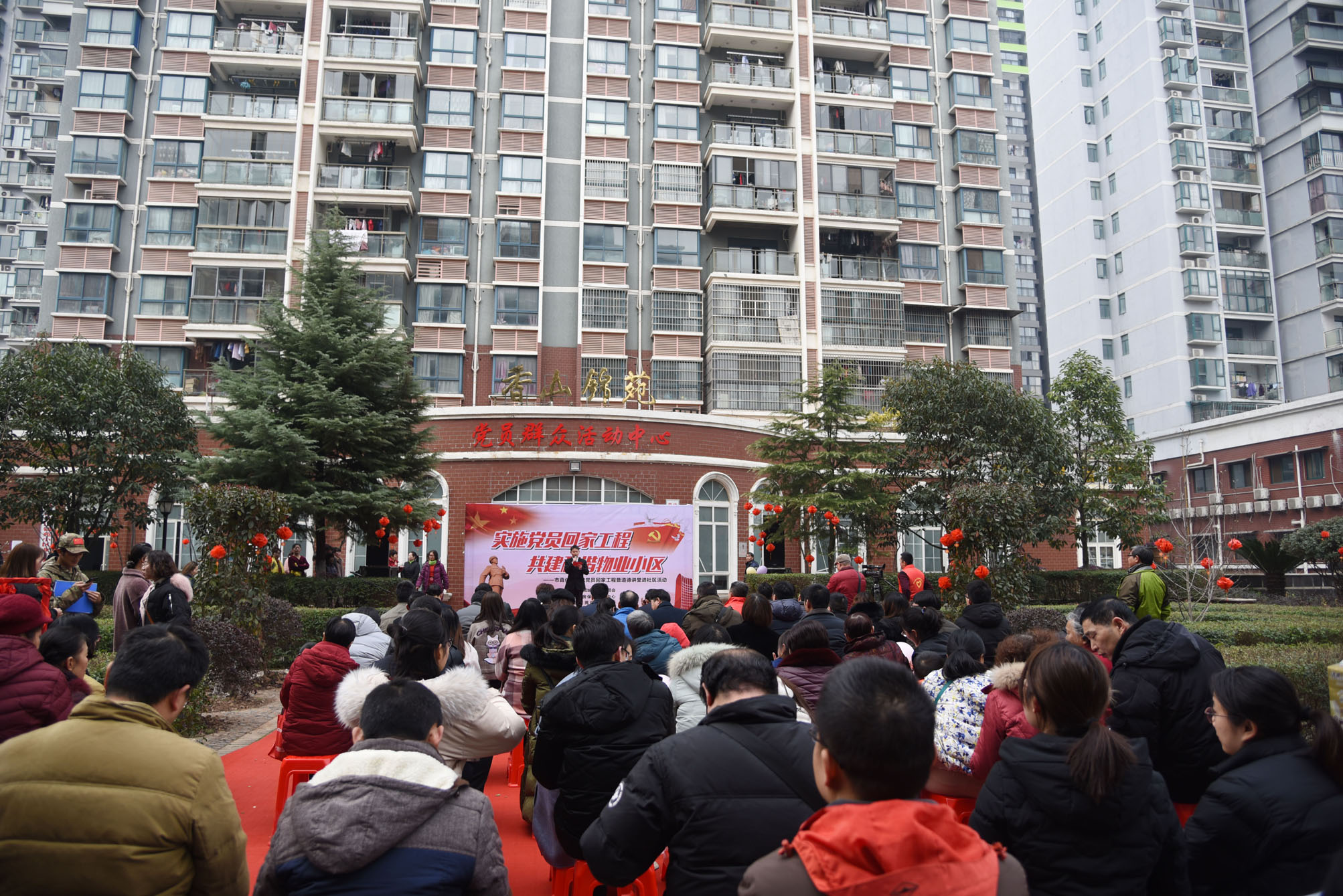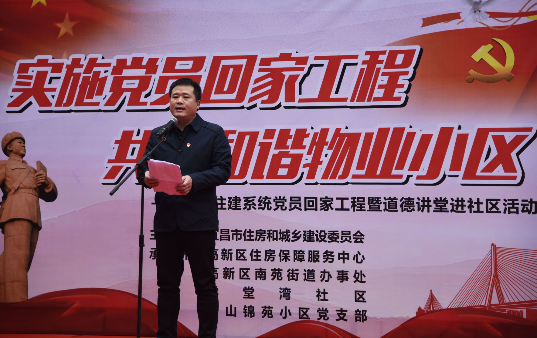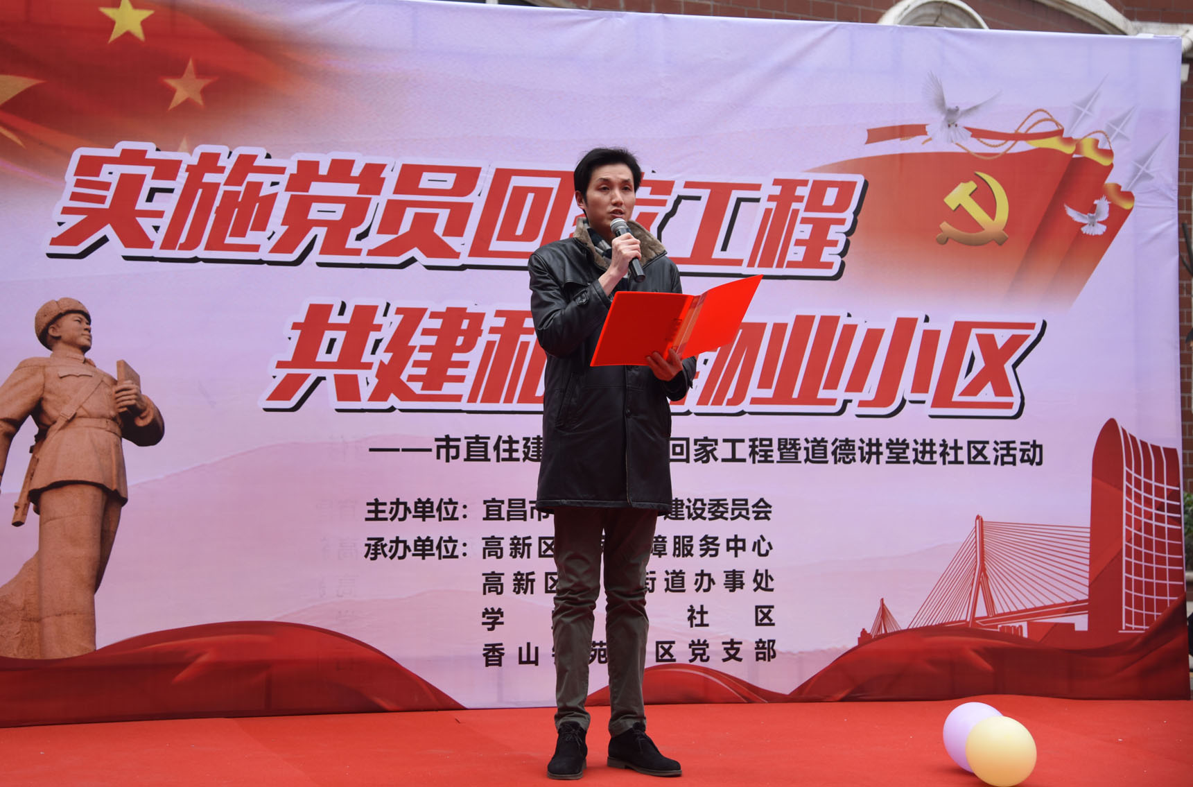 1月24日下午,由市住建委(住保局)主办,高新区住房保障服务中心承办的市直住建系统党员回家工程暨2019年第一期道德讲堂在高新区香山锦苑小区正式举办。委党组成员、副主任、直属机关党委书记叶帮斌出席活动,高新区南苑街办、学堂湾社区、香山锦苑小区党支部、小区居民代表及住建系统职工共百余人参加活动。