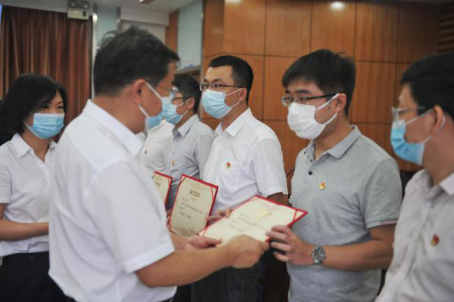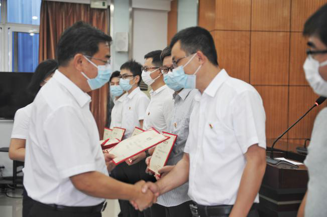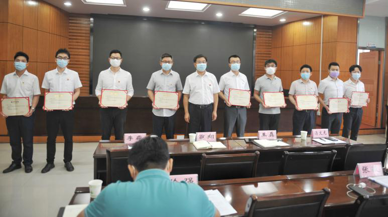 市住建局党组成员、副局长、直属机关党委书记叶帮斌宣读了《市住建局关于表扬2020年5月月度标兵的通报》,局城市发展项目科科长刘涛等10名月度标兵,以及城区既有住宅加装电梯工作领导小组办公室工作人员刘博等2名月度标兵提名人员受到通报表扬。