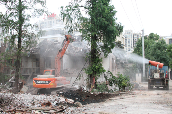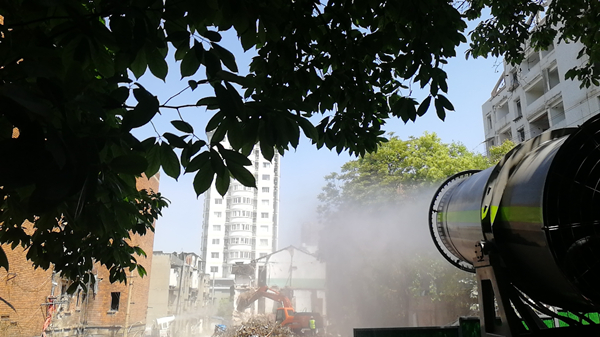 (儿童医院棚改征迁项目现场,雾炮车喷淋降尘)
