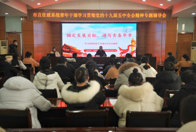 12月24日,市青年宣讲团成员、市委直属机关团工委书记刘钰婷走进市住建局,为市直住建系统青年干部作党的十九届五中全会精神专题辅导。局党组成员、副局长、直属机关党委书记叶帮斌出席活动。