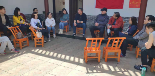 随后,全体人员来到白茶山胡家老屋,党员同志们集体诵读党章、重温入党誓词,并围坐在一起,分享工作经历,畅谈活动感受。