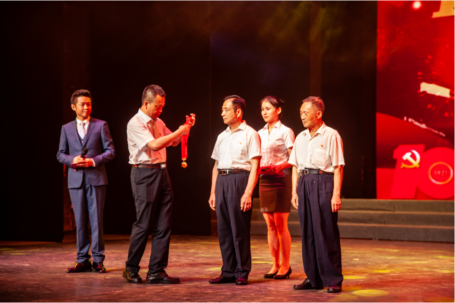 在浓厚的爱党爱国氛围中,住建部人事司副司长陈中博为宜昌住建系统2位党龄超过50年的党员代表韩永顺、李学林颁发“光荣在党50年”纪念章。两位老党员、老前辈佩戴党员徽章,激动地说出心里话,感染了倾听人群。