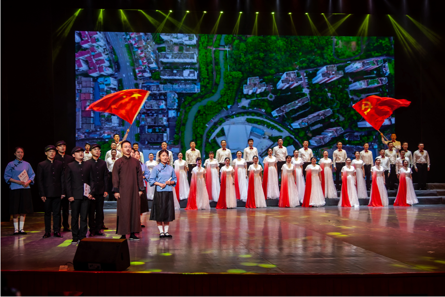 市住建局、市城建项目管理中心、市路灯管理中心情景演唱《追寻理想、走向复兴》,演绎中国革命先驱从十月革命一声炮响,历经百年峥嵘岁月、百年春华秋实,激励宜昌住建人不忘初心,牢记使命,继续砥砺前行。