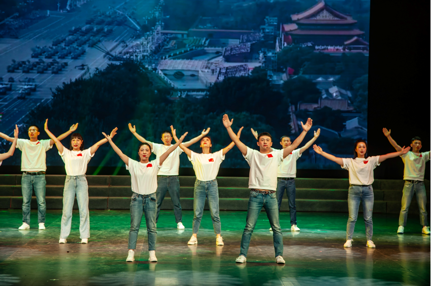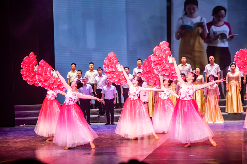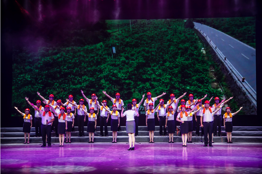 长阳县住建局、湖北沛函集团歌伴舞《在灿烂阳光下》,演绎伟大的中国共产党领导全国各族人民从站起来、富起来到强起来的豪迈情怀,激发宜昌住建人向着人民群众对美好生活的向往而不辍奋斗。