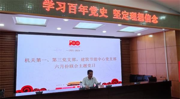 6月29日,市住建局机关一支部、三党支部和市建筑节能推广中心党支部联合开展“学习百年党史 坚定政治信念”支部主题党日暨庆祝建党100周年活动,局机关党委委员、机关纪委委员参加活动,局党组成员刘溯剑同志以普通党员身份参加活动。市住建局党组成员、副局长、直属机关党委书记叶帮斌现场指导并讲专题党课。