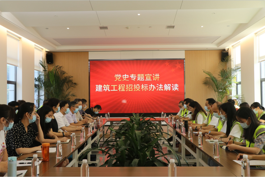 9月23日,市住建局党史学习教育专题宣讲暨建筑工程招投标办法解读,在湖北盛荣建设有限公司开讲。市住建局标准定额站全体党员干部职工及城央壹品项目部工会联合会工人代表、基层员工近40余人参加宣讲交流。