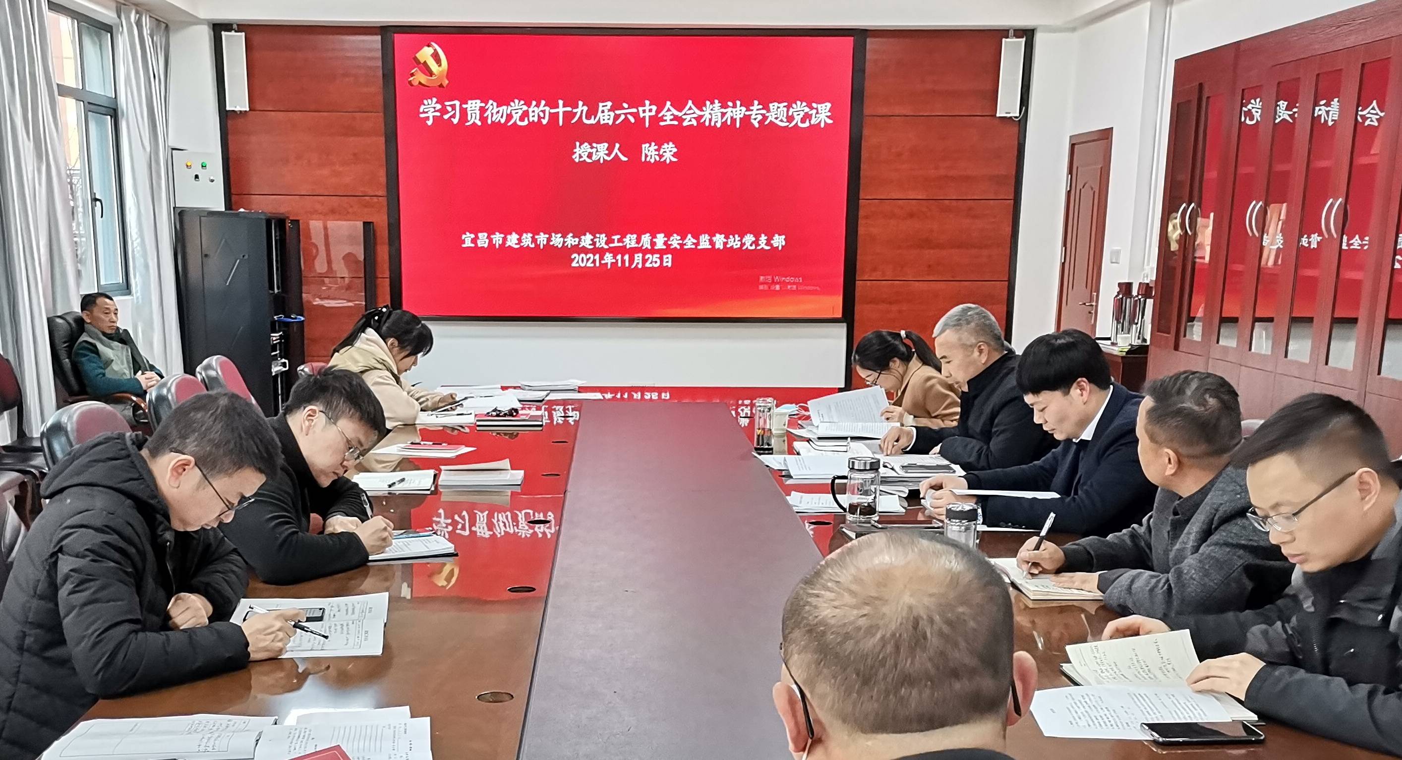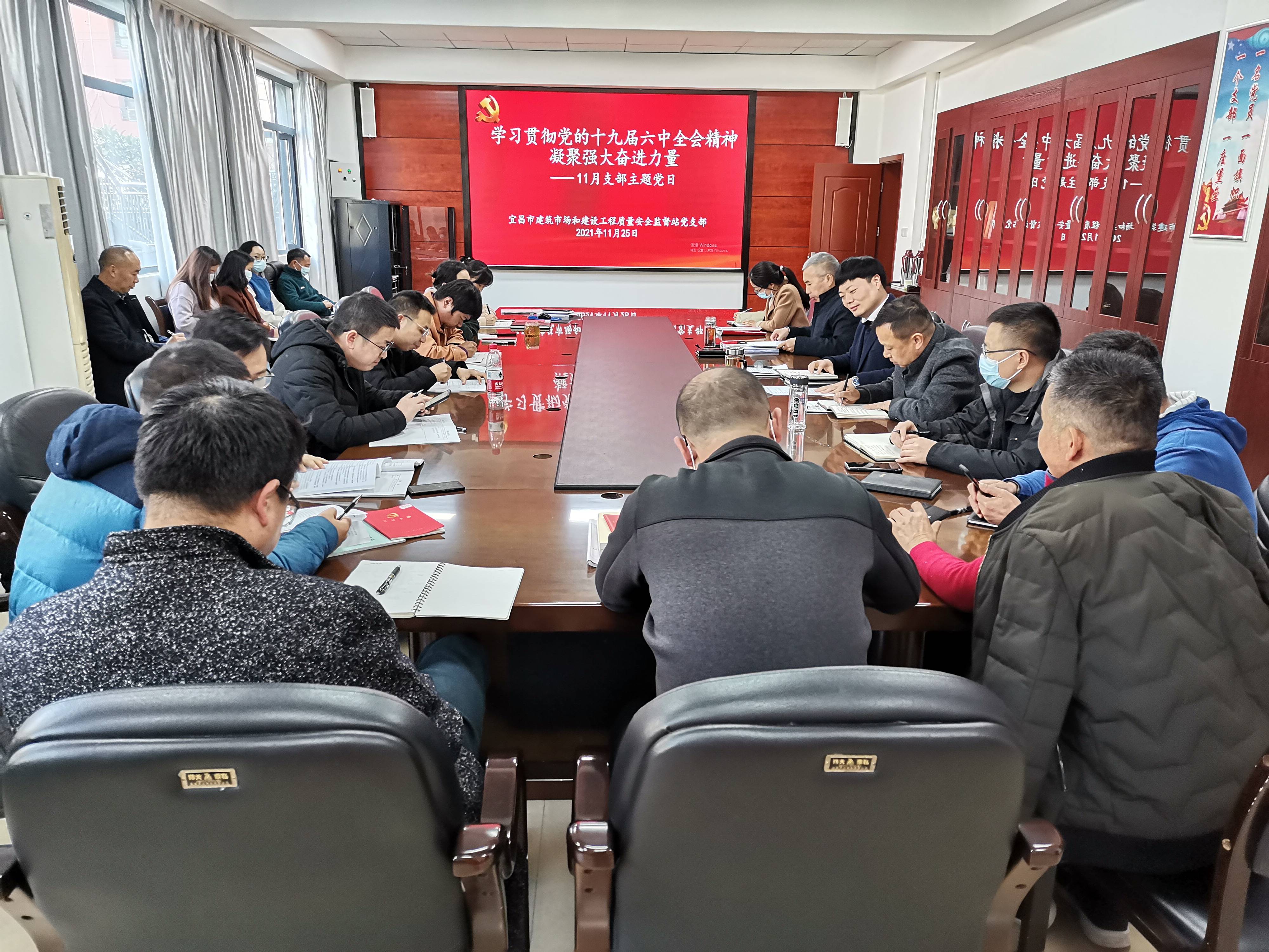 11月25日,市场质安站以“学习贯彻党的十九届六中全会精神 凝聚强大奋进力量”为主题开展11月支部主题党日,全体党员和监督员参会。
