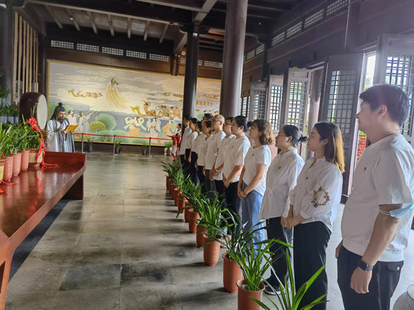 随后,大家在屈原青铜像前,齐声诵读文学著作《橘颂》,走进屈原的瑰丽诗篇,感受他受命于天、故土难离、恪尽职守的执着品质。