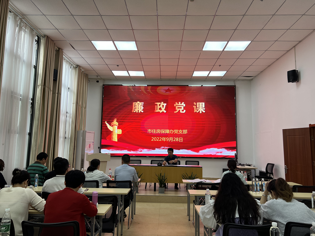 随后,集中重温了入党誓词,通报了9月党费交纳情况,学习了《中国共产党章程》《中共宜昌市委办公室印发〈关于加强市直部门机关纪委建设的意见〉的通知》及“101个罪名解读--单位行贿罪”。市住房保障办纪检委员、副主任姚红卫以“弘扬清廉守正担当实干之风,全面从严治党永远在路上”为题为全体党员上廉政党课,激励党员干部争做清廉守正、干事创业、心系人民的新时代好干部。