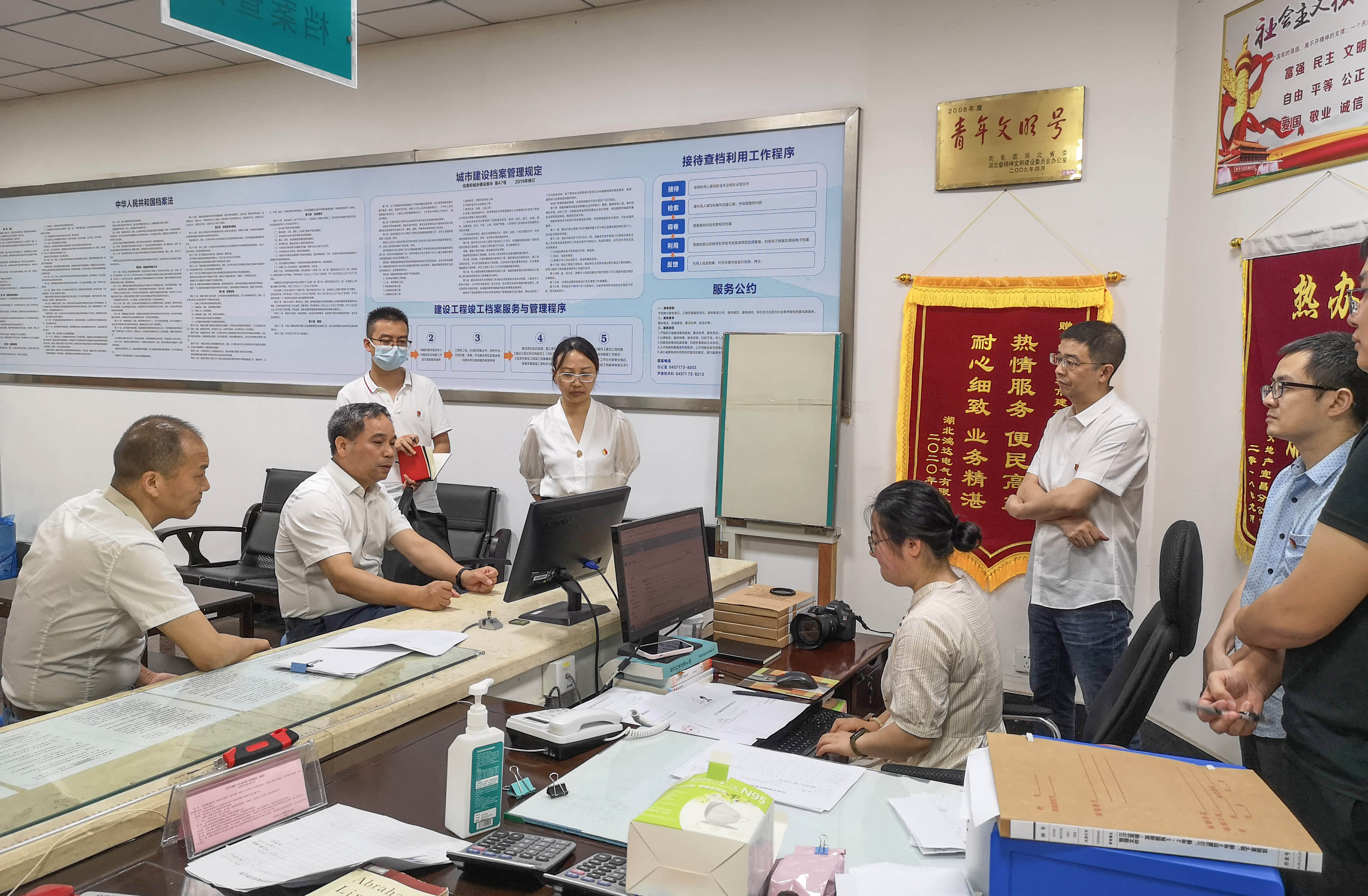 最后,刘溯剑同志调研指导了数字城建档案馆、城建档案管理信息系统和爱国主义教育基地建设情况。