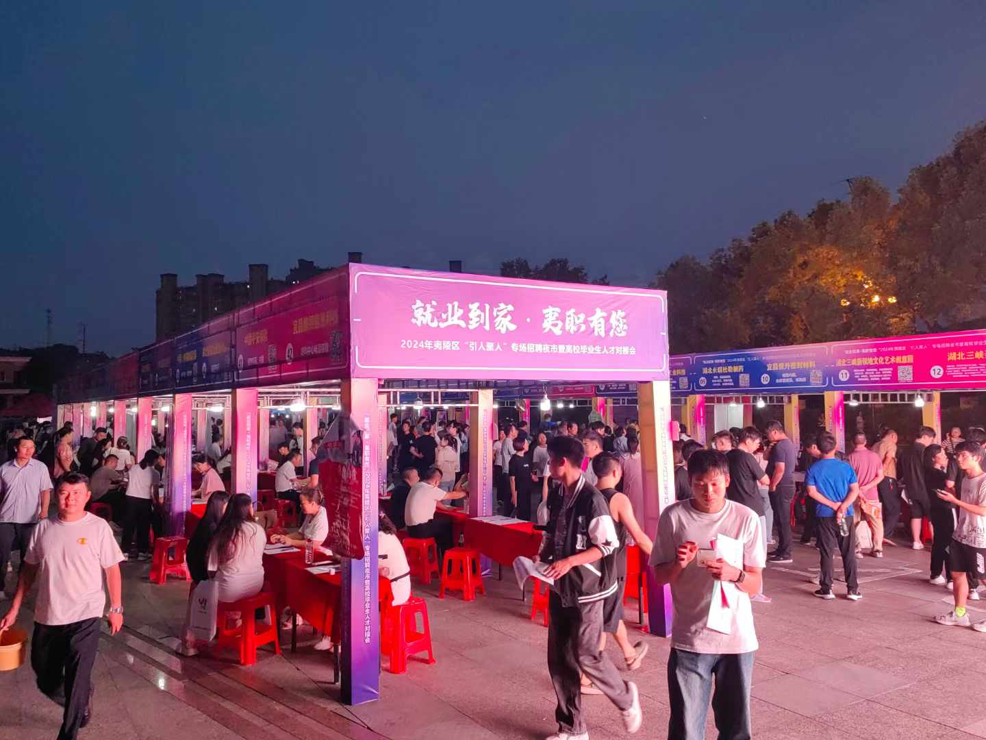 9月29日晚,宜昌市夷陵区人社局举办“引人聚人”专场招聘夜市暨高校毕业生人才对接会,60家企业携2551个岗位火热出摊,实现企业与人才、供给与需求“面对面”,突出沉浸式体验,将政策、岗位、技能、服务送达群众身边。