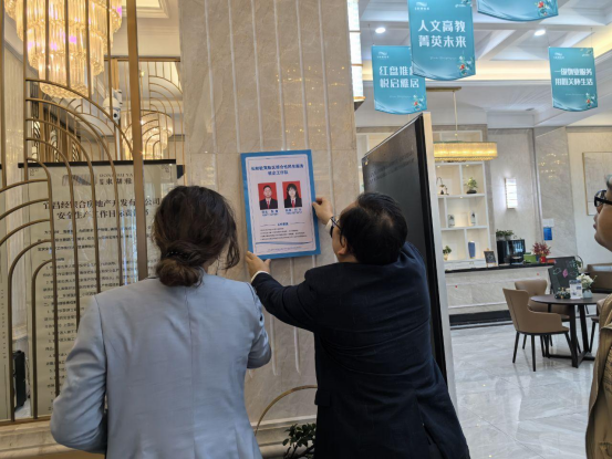 (图中为长阳驻夷陵区综合性民生服务驻企工作队在东湖雅居售楼部张贴公示牌)