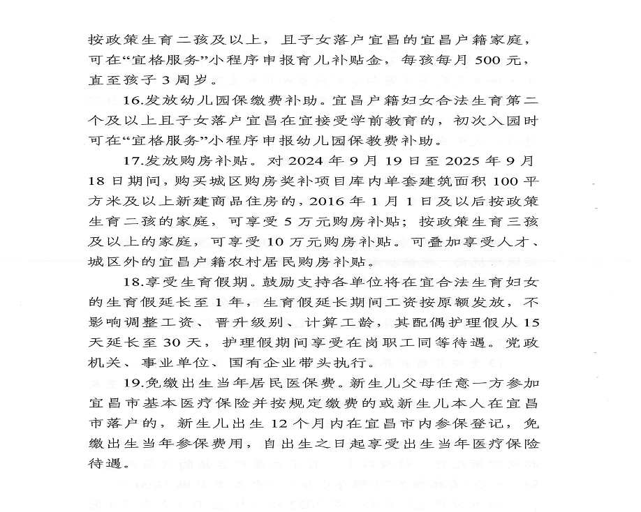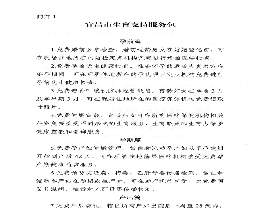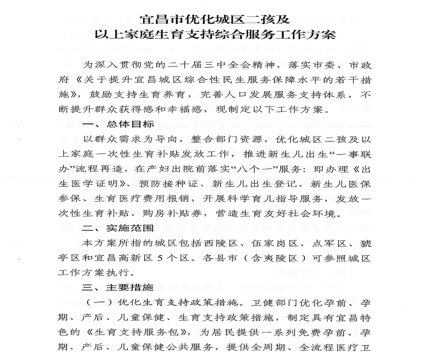 宜昌市优化城区二孩及以上家庭生育支持综合服务工作方案